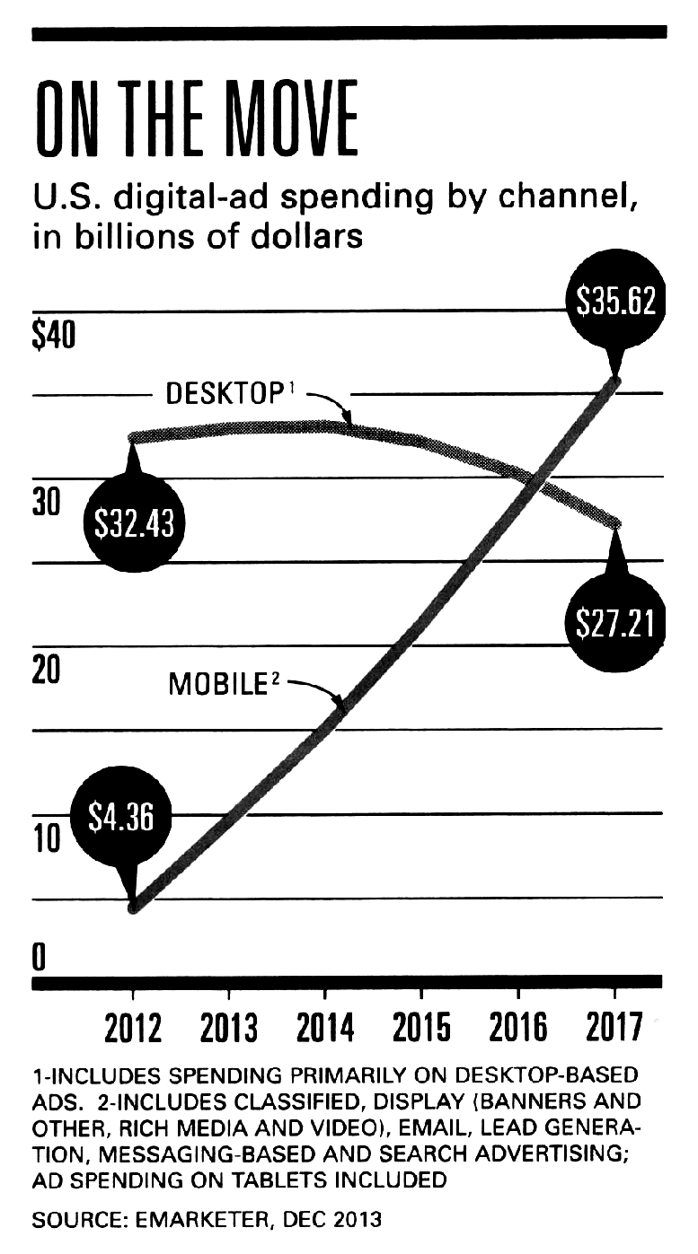Another shows a dramatic boom in "mobile" ad spending. The visual